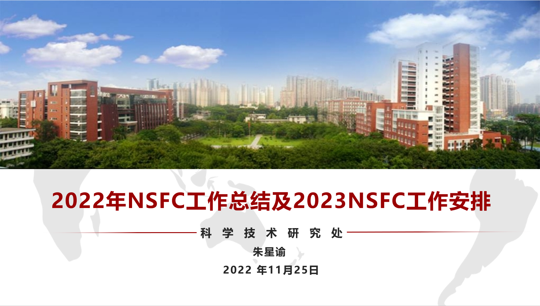 随后,项目科科长朱星谕作了《2022年NSFC工作总结及2023NSFC工作安排》专题报告,在详细介绍我校本年度国家自然科学基金资助情况后,进一步剖析了基金工作面临的难点和痛点,并对下一年的国家自然科学基金项目申报工作安排进行了解读。提出,基金申报工作一定要做在前面,摸清家底,深挖潜力,多方联动,力争在新一年工作中取得新突破。