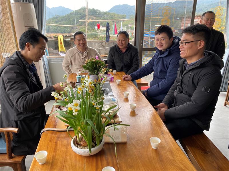2月16日,特派员团队走访了新山村和小楣水村,与村干部、驻村队员进行驻村帮扶工作座谈。在小楣水村,特派员团队考察了茶叶加工厂、水库茶园和乡村振兴生产车间,了解小楣水村经济发展现状、存在的困难和问题,提出开发利用黄岭嶂龙母庙资源,发挥区位优势,引进企业投资,打造龙母湖光休闲茶园。