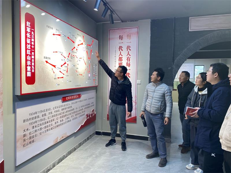 特派员团队首先走访了新白村,开展了“重走长征路,再尝红军茶”主题教育活动。在驻村第一书记叶锦波的讲解和带领下,特派员团队参观了新白村文化展厅,重走了红军长征路线,聆听《群众护“桥”送红军》《半篓陈茶送亲人》等红色故事。团队负责人王在易对新白村红色文化宣传工作给予了极高评价,提出以“红色”为引擎,驱动当地以白毛茶为核心的绿色产业高质量发展的建议。