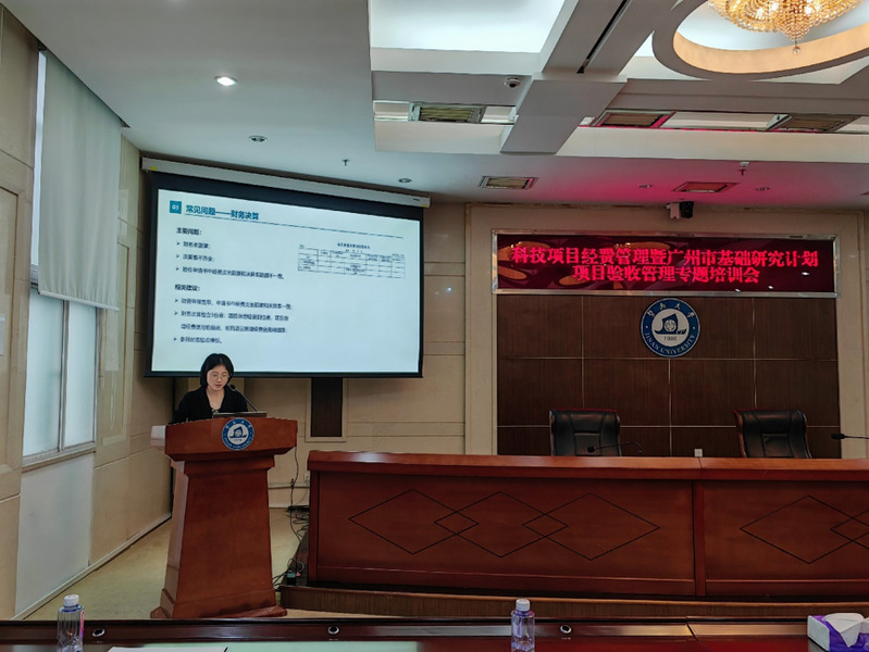最后,科技处雷帆以《广州市“基础研究计划项目”验收培训》为题,介绍了广州市基础研究计划项目验收流程、验收材料及验收中常见问题,使老师更清晰的了解广州市项目验收的具体流程及相关要求,为广州市项目验收打好坚实的基础。