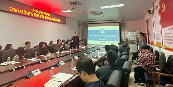 2023年11月13日下午,化学与材料学院在番禺校区F1栋2022会议室召开了2024年度国家自然科学基金项目申报培训会。暨南大学李雪研究员、广州医科大学郭伟圣教授应邀做经验分享报告,化学与材料学院院长陈填烽教授及学院近50位教师线下参与了此次培训会,会议由陈填烽教授主持。